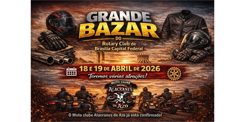 Brasília recebe, neste sábado (18) e domingo (19), o 1º Encontro Motociclístico promovido pelo Rotary Club de Brasília Capital Federal. O evento acontece na sede da Fundação dos Rotarianos de Brasília, no Setor de Clubes Sul, e promete atrair apaixonados por motos e o público em geral com programação variada e foco em solidariedade.