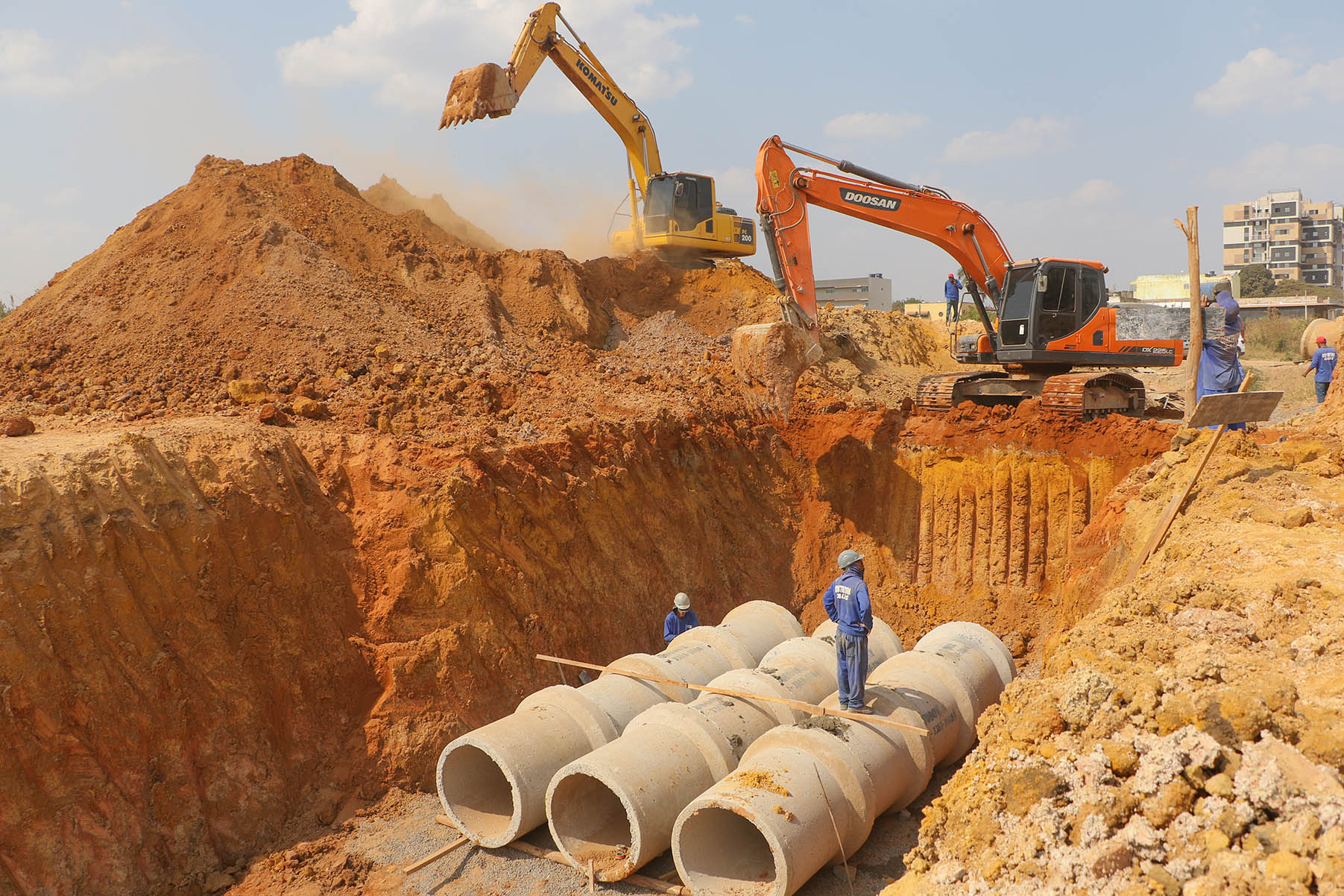 As obras, que têm gerado cerca de 200 empregos diretos e indiretos, ocorrem em etapas. Atualmente, as equipes trabalham na escavação das bacias de detenção, na construção da rede pluvial e na pavimentação asfáltica das vias que já receberam a nova tubulação. A rede de drenagem terá extensão total de 6,7 mil metros, dos quais 4.530 metros já foram instalados. Em relação à pavimentação asfáltica, 16 mil m² do total de 75 mil m² estão prontos. O asfalto novo já cobre as quadras 7 a 19 e os trabalhos seguem em execução nas quadras 1 a 6.